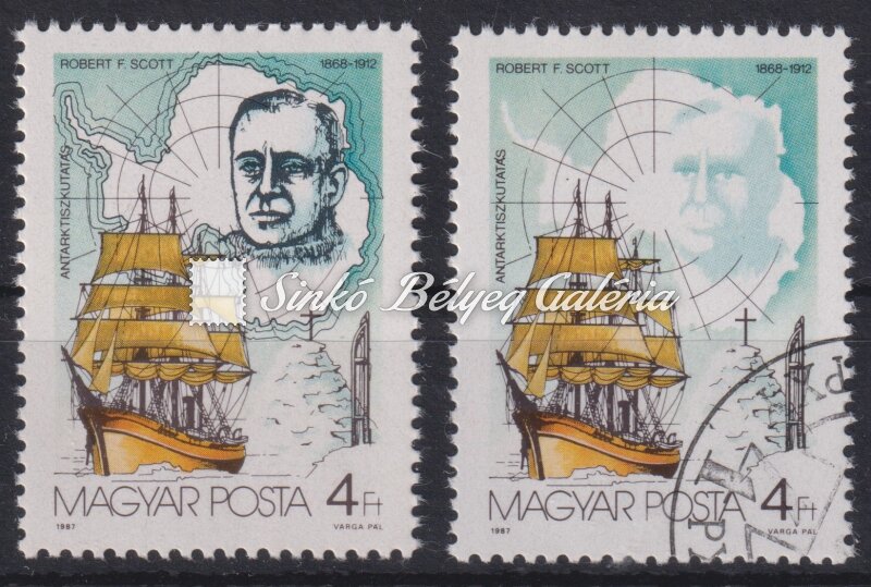 Description | 1987. Antarktiszkutatás - tévnyomat 4Ft bélyegen R.F. Scott arcképe lemaradt, fekete színnyomat hiányzik! / 1987. Antarctic research - misprint From 4Ft stamp, the portrait of R.F. Scott is missing, missing black colour print! |