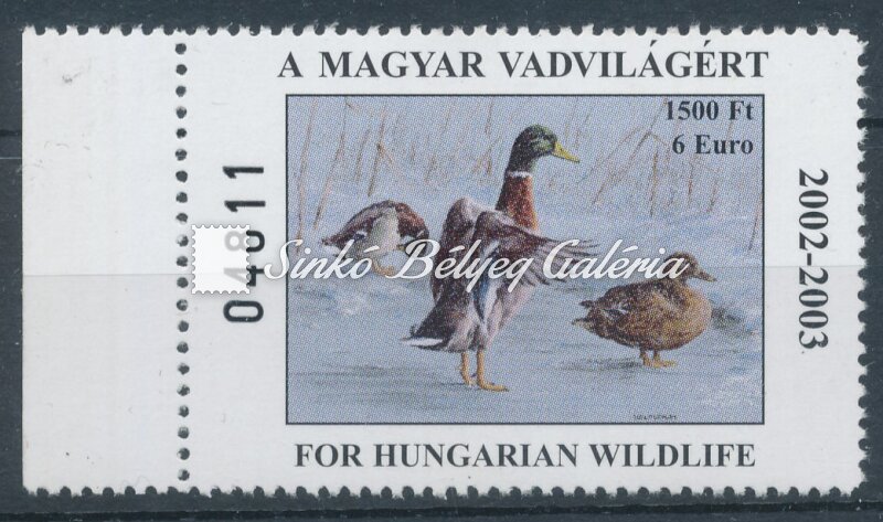 Leírás | 2002/03. Magyar Vadvilágért - különlegesség Ívszéli kiadatlan bélyeg! / 2002/03. For the Hungarian Wildlife -speciality Unpublished stamp from the margin of the sheet! |