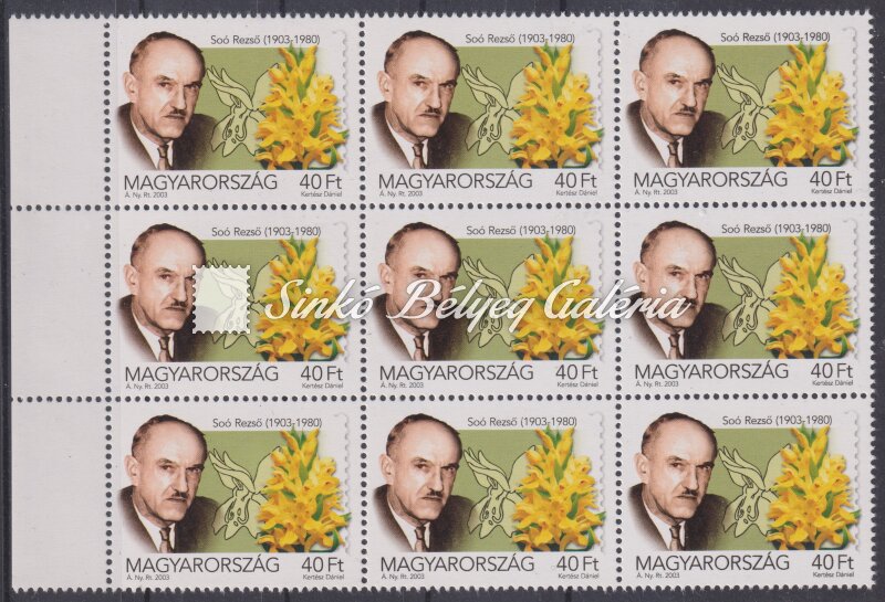 Leírás | 2003. Jeles Magyarok (II.) - különlegesség A Posta által visszavont Soó Rezsó bélyeg 9-es tömbben! / 2003. Famous Hungarians (II.) - speciality The Soó Rezsó stamp in a block of 9, withdrawn by the Post Office! |