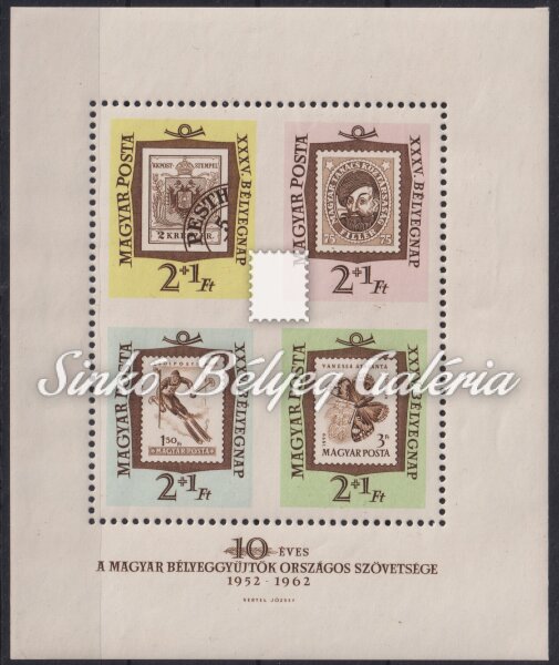Leírás | 1962. Bélyegnap (35.) - Blokk Középen fogazatlan példány, melyet a MABÉOSZ VI. Kongresszusának küldöttei kaptak! A Magyar Posta Ajándéka! Katalógus érték: 22.000 HUF / 1962. Stamp Day (35.) - Block Imperforated in the middle, received by the delegates of the VI Congress of MABÉOSZ! Gift of the Hungarian Post Office! Catalogue value: 22.000 HUF |