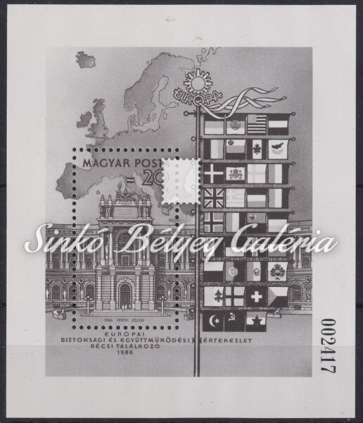 Leírás | 1986. Európai Biztonsági és Együttműködési Értekezlet (X.) Bécs - Blokk Feketenyomat fekete sorszámmal! / 1986. European Conference on Security and Cooperation (X.) Vienna - Block Black print with black serial number! |