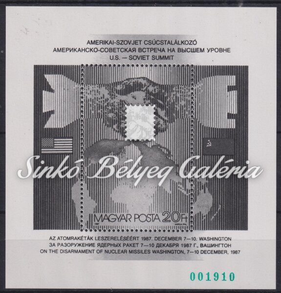 Leírás | 1987. Csúcstalálkozó - Blokk Feketenyomat zöld sorszámmal! / 1987. Summit - Block Black print with green serial number! |