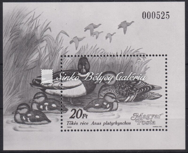 Leírás | 1988. Récék - Blokk Feketenyomat fekete sorszámmal. Katalógus érték: 15.000 HUF / 1988. Ducks - Block Black print with black serial number. Catalogue value: 15.000 HUF |
