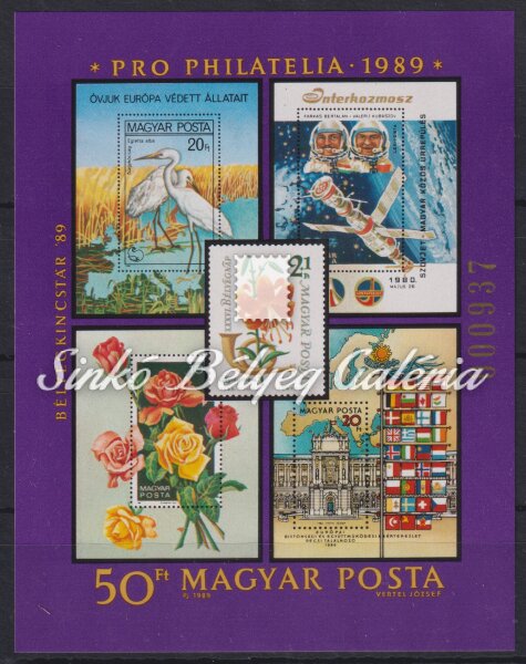 Leírás | 1989. PRO PHILATELIA (I.) - Blokk Bélyegkincstár '89 felirattal, 4mm magas zöld sorszámmal! / 1989. PRO PHILATELIA (I.) - Block With the subtitle Stamp treasury '89, and 4mm green serial number! |