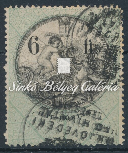 Leírás | 1868. Okirati illetékbélyeg 6Ft bélyeg 12-es fogazattal sárgás vastag papíron. Katalógus érték: 12.000 HUF / 1868. Documentary revenue stamp 6Ft stamp with 12 perforation on a thick yellowish paper. Catalogue value: 12.000 HUF |