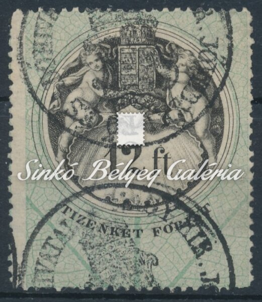 Leírás | 1868. Okirati illetékbélyeg 12Ft bélyeg 12-es fogazattal sárgás vastag papíron. Fekete bélyegzővel! Katalógus érték: 40.000 HUF / 1868. Documentary revenue stamp 12Ft stamp with 12 perforation on a thick yellowish paper. With black cancellation! Catalogue value: 40.000 HUF |