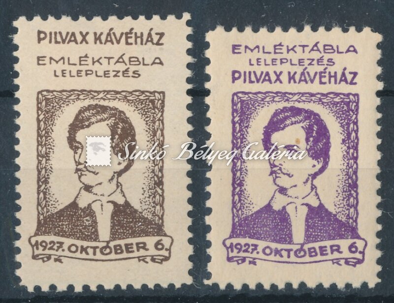 Description | 1927. Pilvax Kávéház Petőfi Sándor Emléktábla Leleplezés - 2db levélzáró / 1927. Pilvax Cafe Sandor Petofi Memorial Plaque Unveiling - 2 cinderellas |