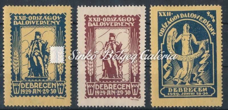 Description | 1929. XXII. Országos Dalosverseny Debrecen - 3db levélzáró / 1929. 22th National Song Contest Debrecen - 3 cinderellas |