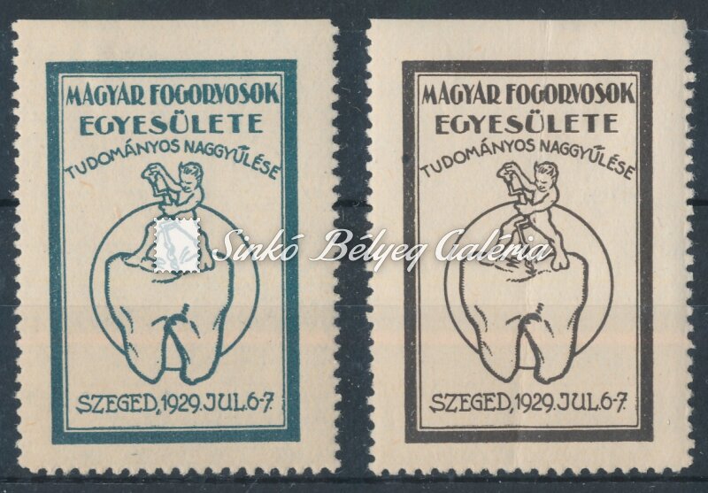 Leírás | 1929. Magyar Fogorvosok Egyesülete Tudományos Naggyűlése Szeged - 2db levélzáró / 1929. Scientific General Assembly of the Hungarian Dental Association Szeged - 2 cinderellas |