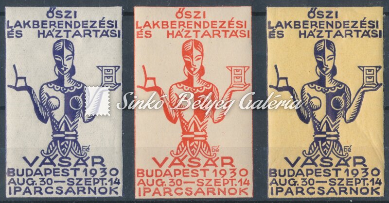 Leírás | 1930. Őszi Lakberendezési és Háztartási Vásár Budapest - 3db levélzáró / 1930. Autumn Furnishing and Household Fair Budapest - 3 cinderellas |