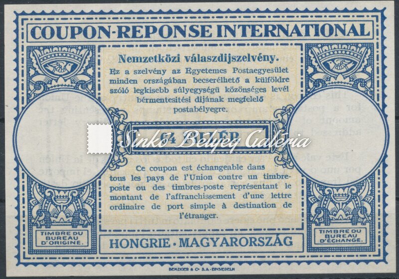 1936. Nemzetközi Válaszdíj szelvény UPU Londoni minta 64f