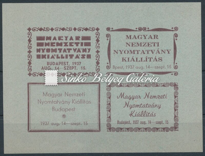 Description | 1937. Magyar Nemzeti Nyomtatvány Kiállítás - emlékív / 1937. Hungarian National Print Exhibition - commemorative sheet |