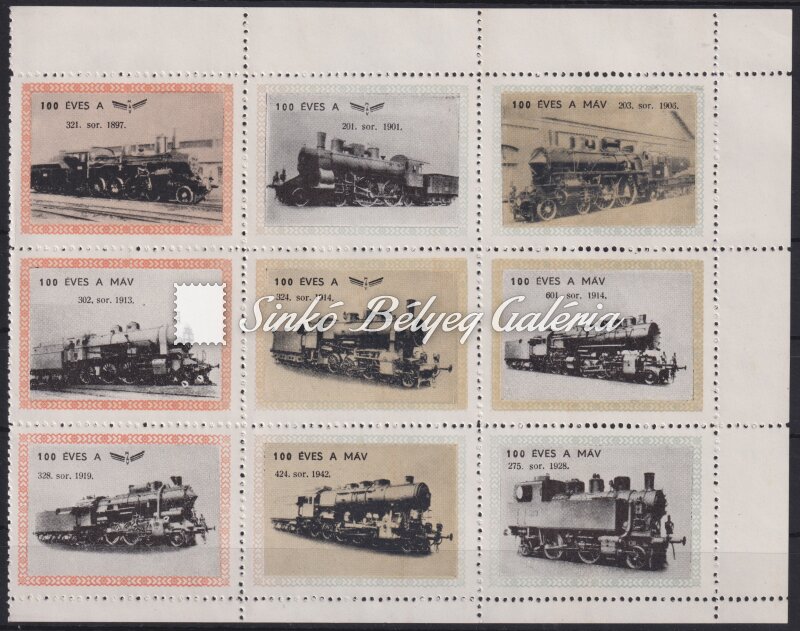 Leírás 1968. 100 éves a MÁV - 9db levélzáró / 1968. 100 years of MAV (Hungarian State Railways) - 9 cinderellas