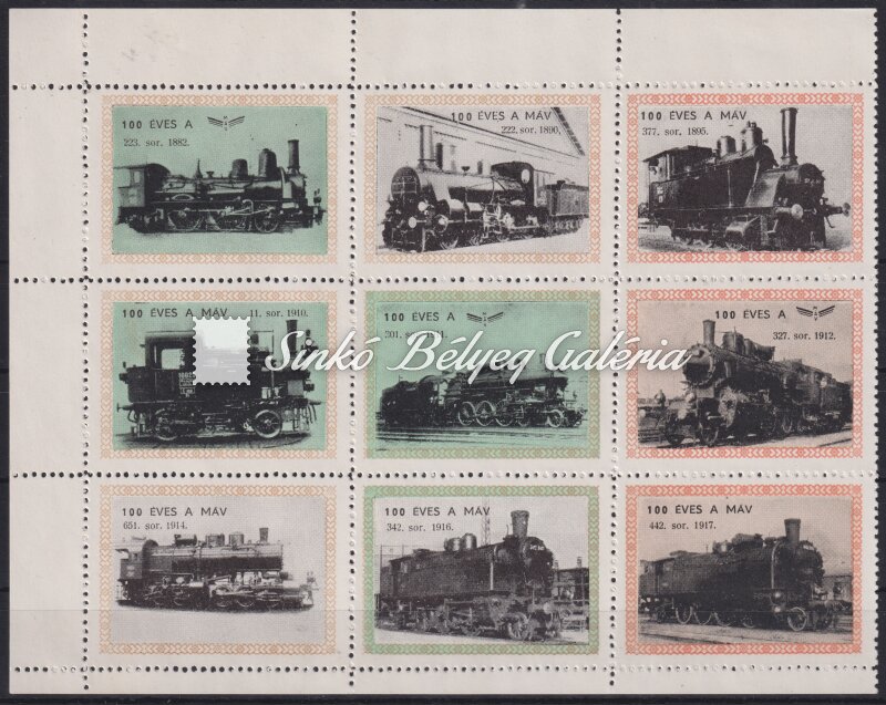 Leírás | 1968. 100 éves a MÁV - 9db levélzáró / 1968. 100 years of MAV (Hungarian State Railways) - 9 cinderellas |