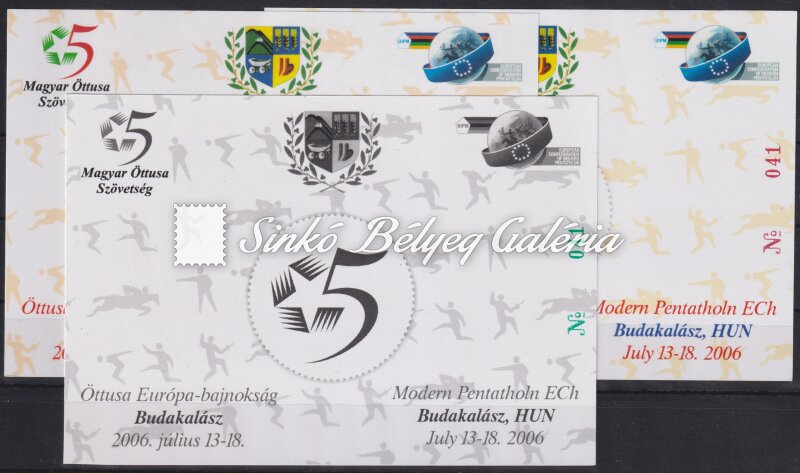 Leírás | 2006/44. Öttusa Európa-bajnokság Budakalász - emlékív garnitúra / 2006/44. European Modern Pentathlon Championships Budakalasz - commemorative sheet set |