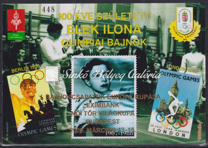 Description | 2009/21. Elek Ilona - emlékív felülnyomattal / 2009/21. Ilona Elek - commemorative sheet with overprint |