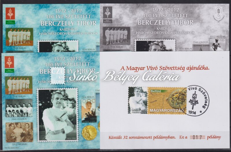 2012. 100 éve született Berczelly Tibor kardvívó háromszoros olimpiai bajnok - emlékív garnitúra