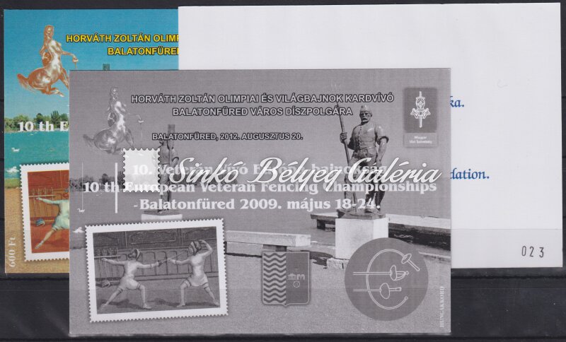 Leírás | 2012. Horváth Zoltán Olimpiai és Világbajnok kardvívó Balatonfüred város díszpolgára - emlékív garnitúra felülnyomattal / 2012. Zoltán Horvath Olympic and World Champion fencer Honorary Citizen of Balatonfured - commemorative sheet set with overprint |