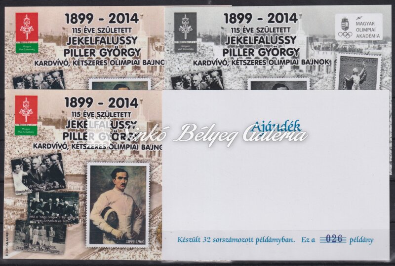 2014. 115 éve született Jekelfalussy Piller György kardvívó, kétszeres olimpiai bajnok - emlékív garnitúra