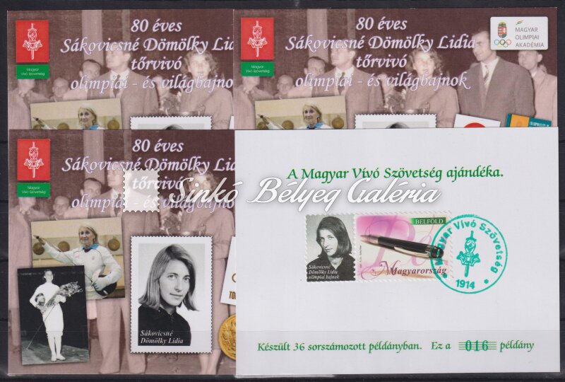 Leírás | 2016. 80 éves Sákovicsné Dömölky Lídia tőrvívó olimpiai és világbajnok - emlékív garnitúra / 2016. Lidia Sakovicsne Domolky Olympic and world champion in fencing is 80 years old - commemorative sheet set |