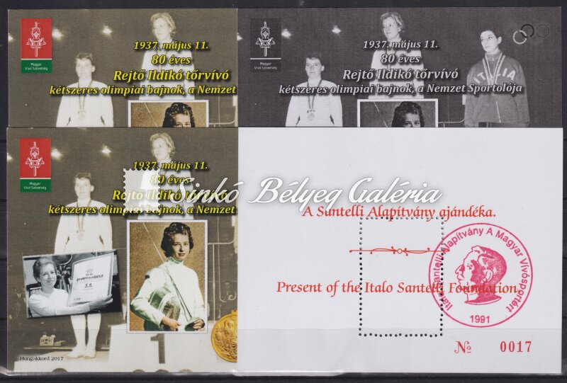 Description | 2017. 80 éves Rejtő Ildikó tőrvívó kétszeres olimpiai bajnok, a Nemzet Sportolója - emlékív garnitúra / 2017. Ildiko Rejto fencer, two-time Olympic champion, National Athlete, is 80 years old - commemorative sheet set |