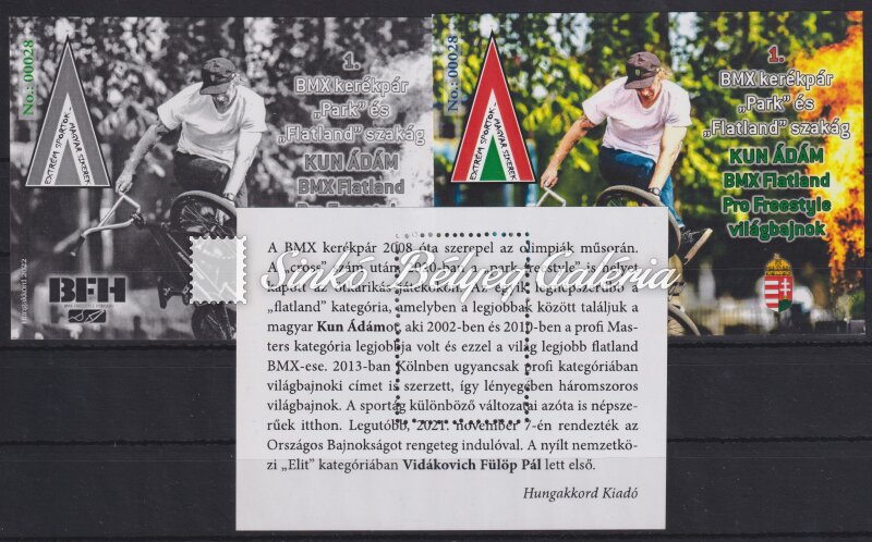 Description | 2022. 1. BMX kerékpár "Park" és "Flatland" szakág Kun Ádám BMX Flatland Pro Freestyle világbajnok - emlékív garnitúra / 2022. 1. BMX cycling "Park" and "Flatland" section Adam Kun BMX Flatland Pro Freestyle World Champion - commemorative sheet set |