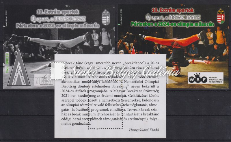 Description | 2022. 10. Új sport, a BREAK DANCE Párizsban a 2024-es olimpia műsorán - emlékív garnitúra / 2022. 10. New sport, BREAK DANCE in Paris on the 2024 Olympic programme - commemorative sheet set |