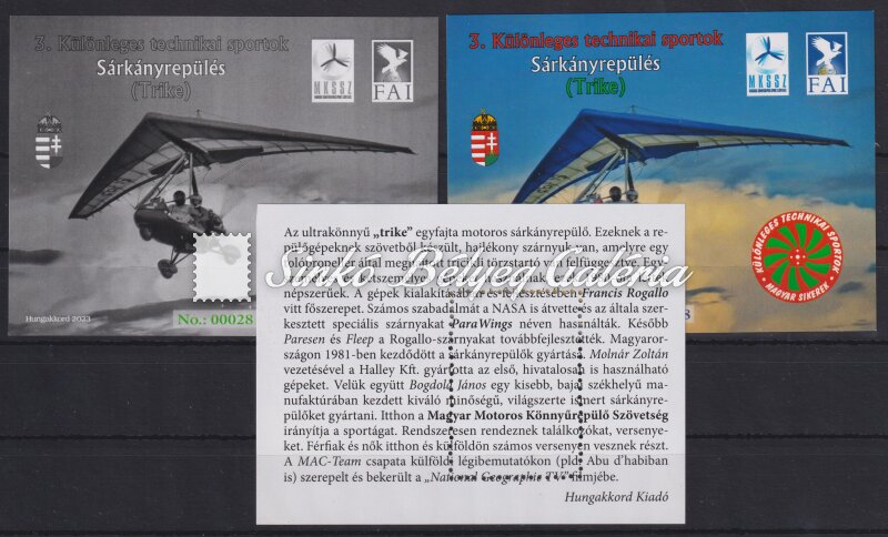 Leírás | 2023. 3. SÁRKÁNYREPÜLÉS (Trike) - emlékív garnitúra / 2023. 3. TRIKE - commemorative sheet set |