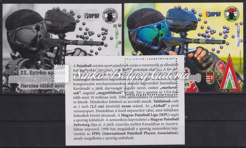 Leírás | 2024. 22. PAINTBALL (Festéklövészet) Harcias túlélő sport - emlékív garnitúra / 2024. 22. PAINTBALL A feisty survival sport - commemorative sheet set |