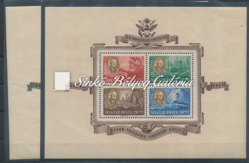| Description | 1949. Alkotmány (I.) Ívsarki 4-es tömb sor XI. vízjellel! / 1949. Constitution (I.) Block of 4 set from the corner of the sheet with XI. watermark! |